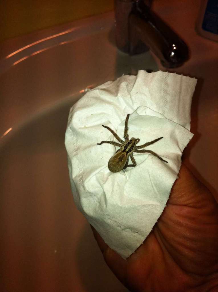 Sono rimasta colpita dalle dimensioni (facilmente deducibili dal confronto con la mia mano), ma non so se si tratti di un ragno velenoso o comunque pericoloso.