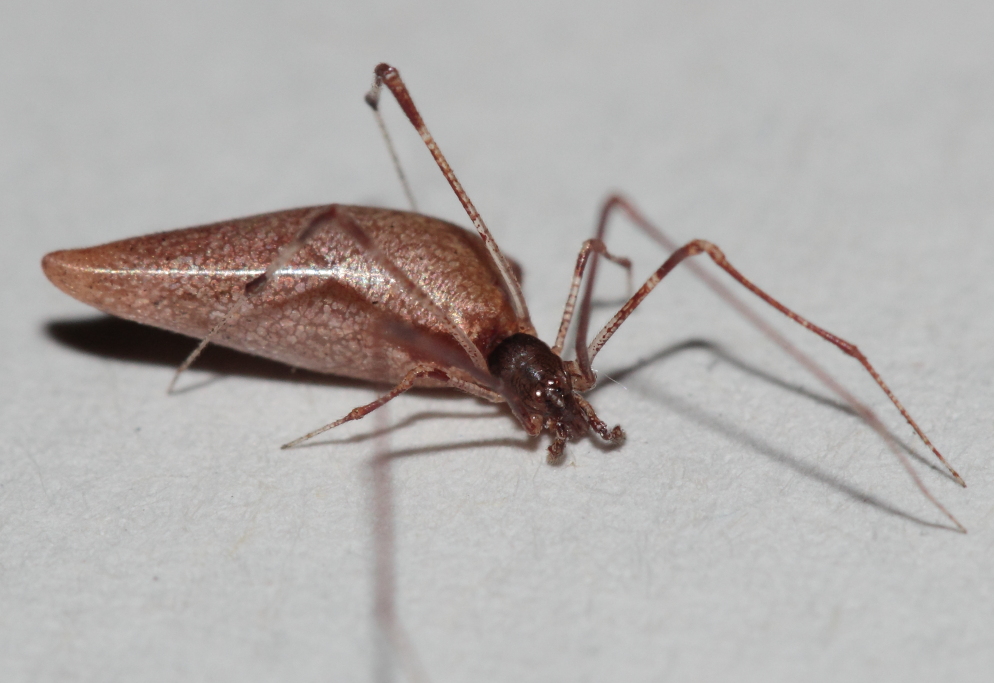 Bellissimo! Non l'ho mai incontrato, ma conoscevo le sue abitudini. In effetti, come del resto Argyrodes anche se in misura un po' meno drastica, è costruito per stare sempre appeso per le zampe a dei fili di ragnatela. per lo più, non sua, anche se immagino che anche lui si faccia delle piccole tele per deporre le uova e simili. Tutti i Theridiidae hanno la capacità di emettere un filo imperlato di grosse palline vischiose e spesso questa è la loro principale arma di difesa, più che di attacco. Per questo, di solito affrontano un aggressore voltandogli le spalle e cercando di buttargli addosso questo filo che lo invischia. E' una difesa che ha effetti clamorosi e riesce a bloccare anche predatori agguerriti. Anche altri Theriddiidae usano lo stesso sistema come arma di attacco; per esempio, i maschi di Steatoda paykulliana che, da adulti, diventano erranti finché non si stabiliscono nella tela di una femmina. Questo, evidentemente, si è specializzato nel cacciare ragni. La similitudine con Argyrodes, che invece vive da ospite non invitato nelle tele altrui e si nutre delle prede catturate dal titolare, ma lo rispetta, potrebbe suggerire che quella di Romphea sia stata un'ulteriore specializzazione. I ragni che predano soprattutto altri ragni sono parecchi: Molti Gnaphosidae tra cui Drassodes e Scotophaeus che li attaccano direttamente con mosse simili al judo, i Palpimanidae che hanno sviluppato zampe prensili, Scytodes che li invischia sputando un filo su di loro, e altri che operano nelle ragnatele come Romphea.