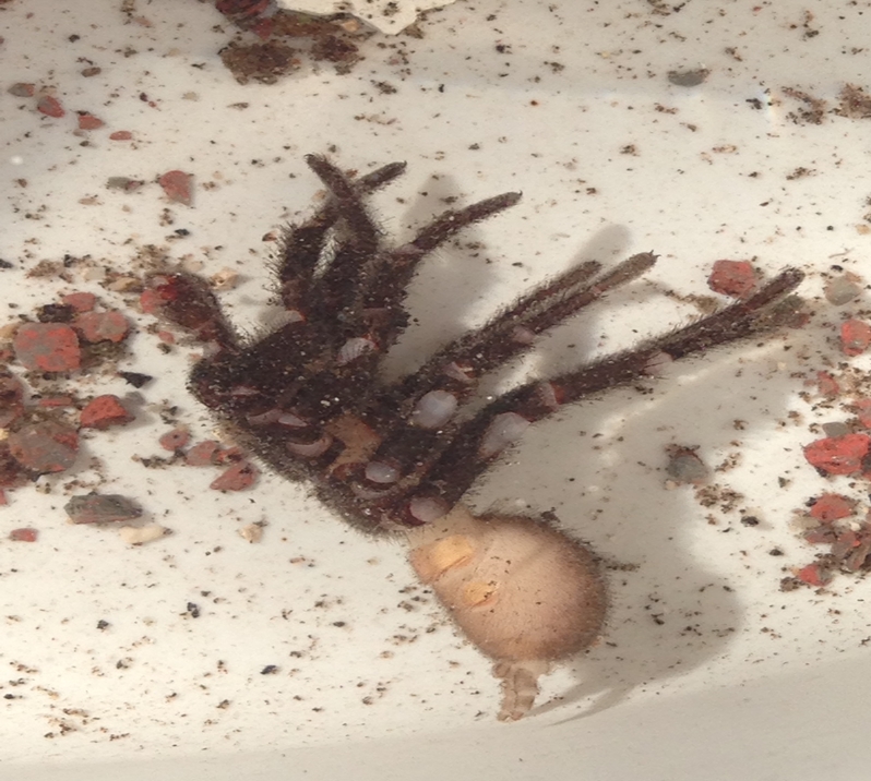 Potrebbe essere una Cteniza sp., forse annegata nella sua tana nel terreno a causa della pioggia. |