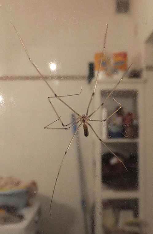 Buondì! Ho da identificare un altro amico a otto zampe (qui fotografato sulla parete di vetro di una doccia); è un Pholcidae, giusto? Si capisce la specie?