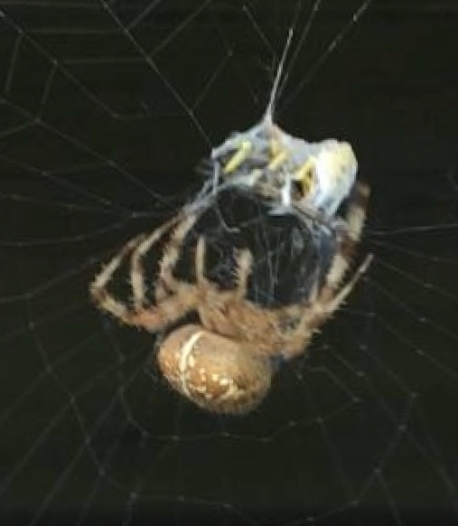 Buongiorno, ho trovato questo ragno intento nel tessere la ragnatela intorno ad una vespa, sapreste dirmi di cosa si tratta ?