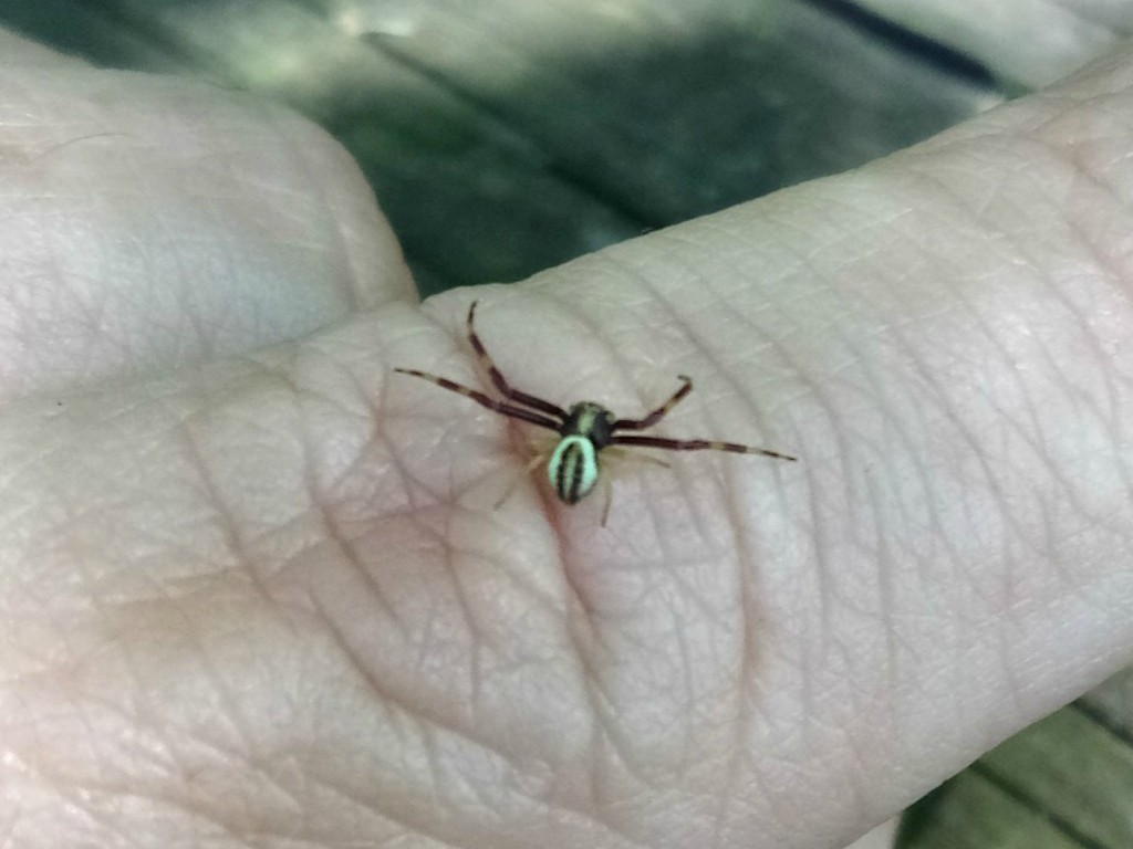 Esemplare maschio. A caccia sul mio dito... Dimensioni circa 3-4 mm.
