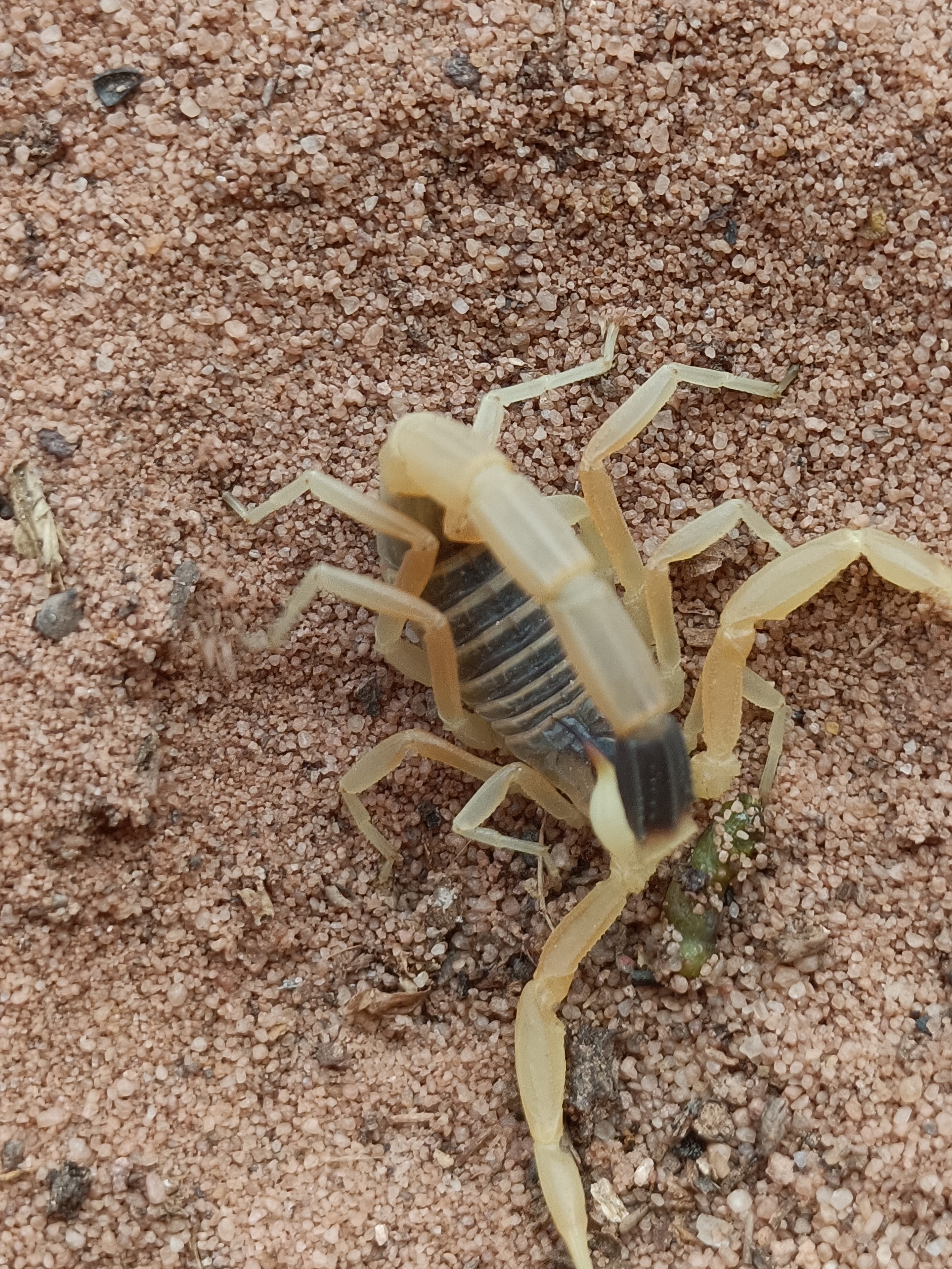 | Leiurus quinquestriatus Hemprich & Ehrenberg, 1829 (cf.) - Buthidae https://www.entomologiitaliani.net/public/forum/phpBB3/viewtopic.php?f=424&t=98426 |