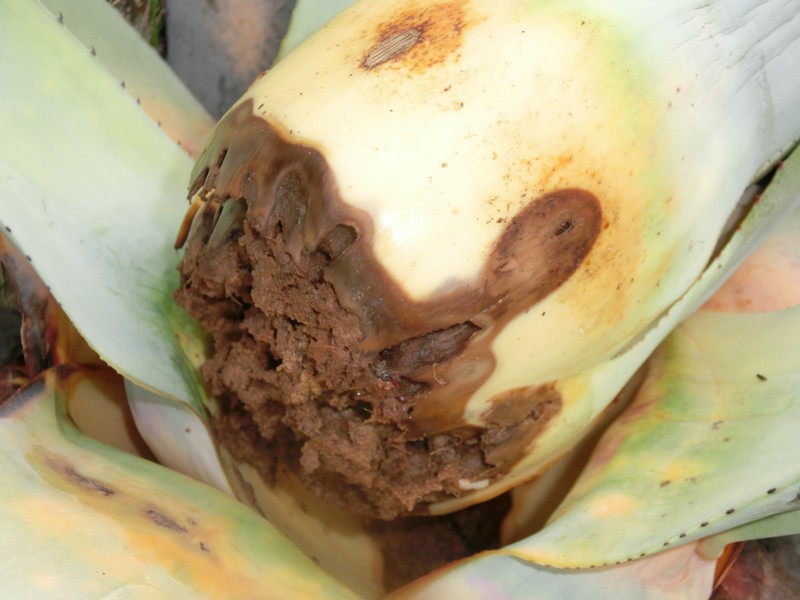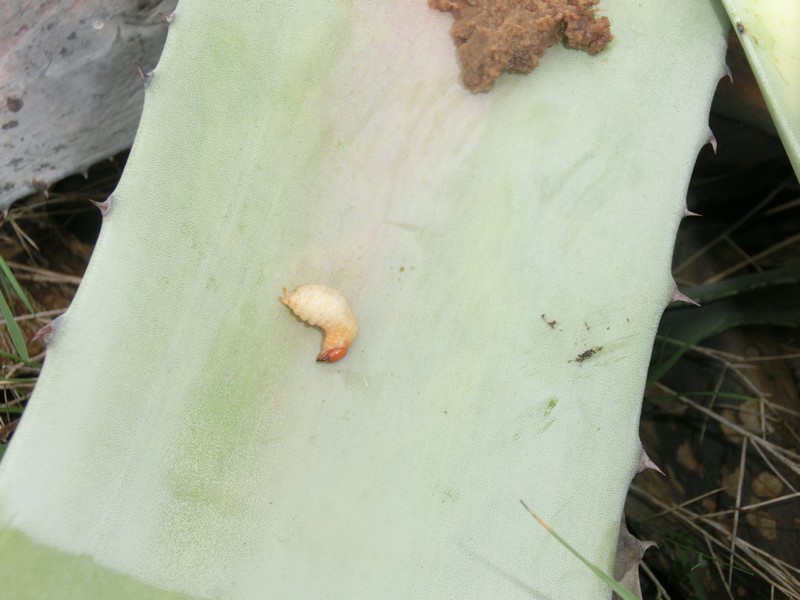 In una sola piccola pianta ce ne erano un centinaio tra adulti e larve a vari stadi, ma lungo la strada ho visto moltissime agavi afflosciate come quella in foto.