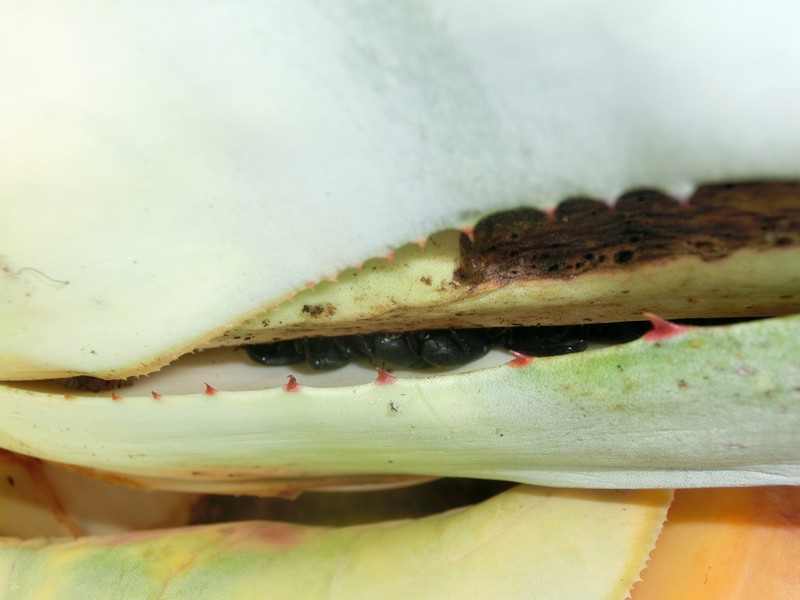 Scyphophorus acupunctatus Gyllenhal, 1838 Trovato, purtroppo, molto abbondante a Gagliano del Capo (Lecce), il 03.XI.2018, ma i primi due esemplari li avevo incontrati a Santa Maria di Leuca (Lecce). In una sola piccola pianta ce ne erano un centinaio tra adulti e larve a vari stadi, ma lungo la strada ho visto moltissime agavi afflosciate come quella in foto. Ciao