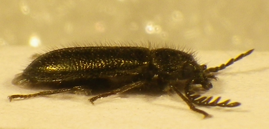 Spero siano "leggibili" le foto del margine elitrale di profilo cosi da vedere lo “sdoppiamento” (che poi, se è lui, è più una "biforcazione") che sono riuscito a notare (e comprendere) solo confrontandolo più volte con la coppietta di A. pectinatus postata ieri da cui differisce anche per il colore delle zampe e la forma degli antennomeri del maschio.