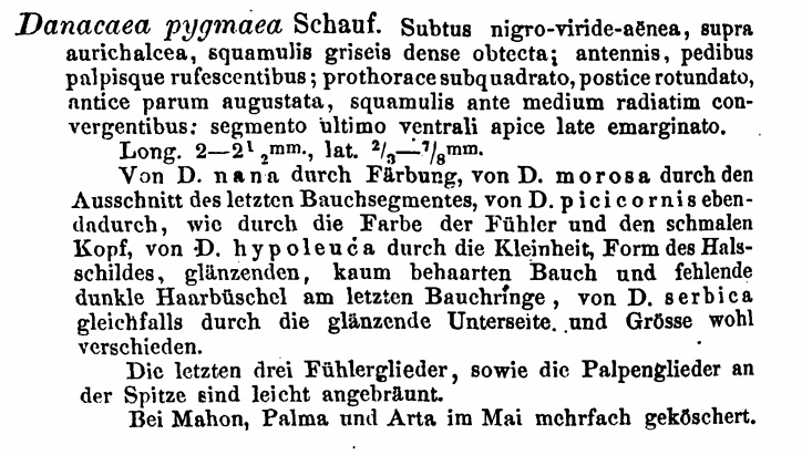 Hello, yes that's it. D. (Danacea) pygmaea Schaufuss, 1869.