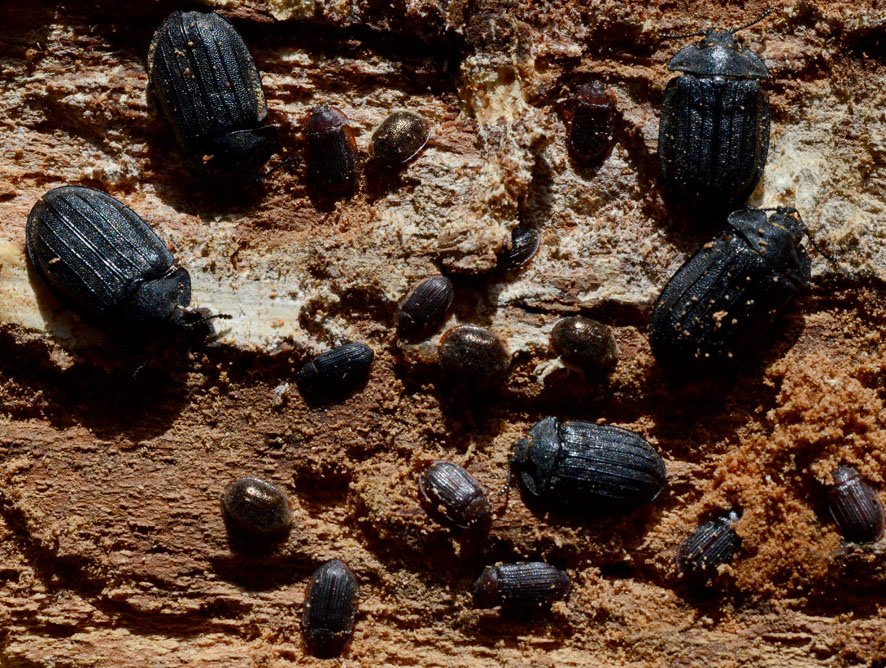 Peltis grossa (Linnaeus 1758); Ostoma ferruginea (Linnaeus, 1758); Grynocharis oblonga (Linnaeus, 1758); Thymalus limbatus (Fabricius, 1787) - Trogossitidae