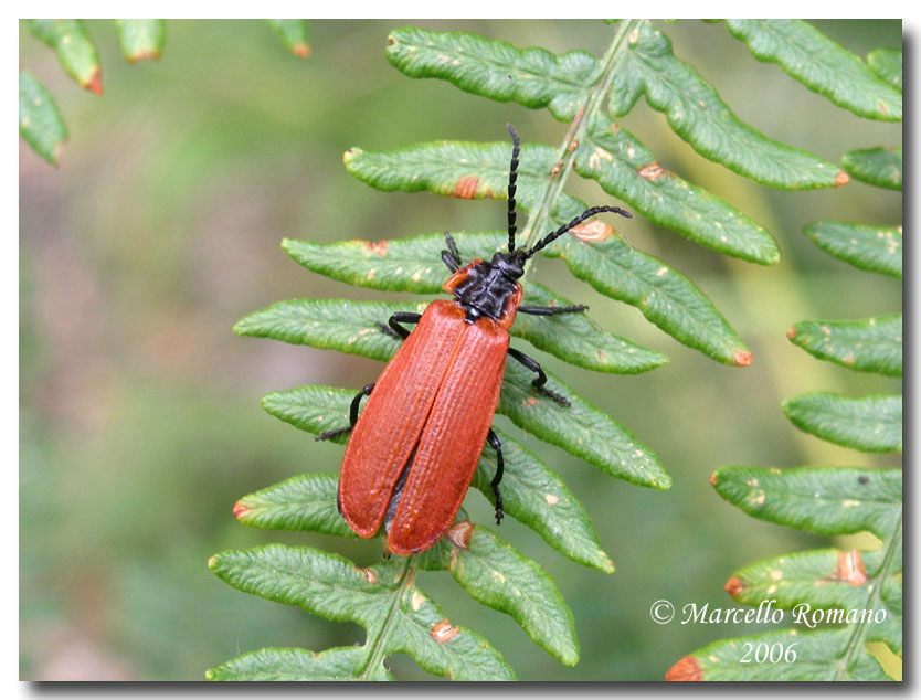 Però, per i lati del protorace convergenti in avanti del tuo esemplare direi L. sanguineus, anche se la macchia nera mediana è molto estesa e gli articoli antennali sono troppo lunghi.