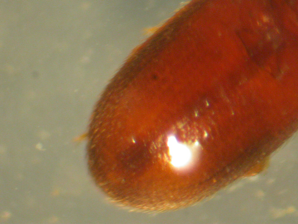 Si, il colore è il suo, tant'è che durante il lavaggio l'ho subito individuato a occhio nudo per il colore che risaltava in mezzo ai detriti; circa la possibile immaturità non saprei dirti: rigirandolo sotto lo stereo in immersione mi è parso che i tegumenti siano ben sclerificati. Ad ogni modo lo vedrai personalmente, credo sia l'unico modo per poter dire, eventualmente, qualcosa di certo.....