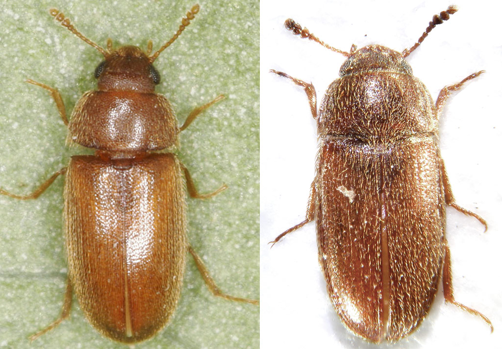 A sinistra l'esemplare di Nicola e a destra Typhaea stercorea, immagine presa da