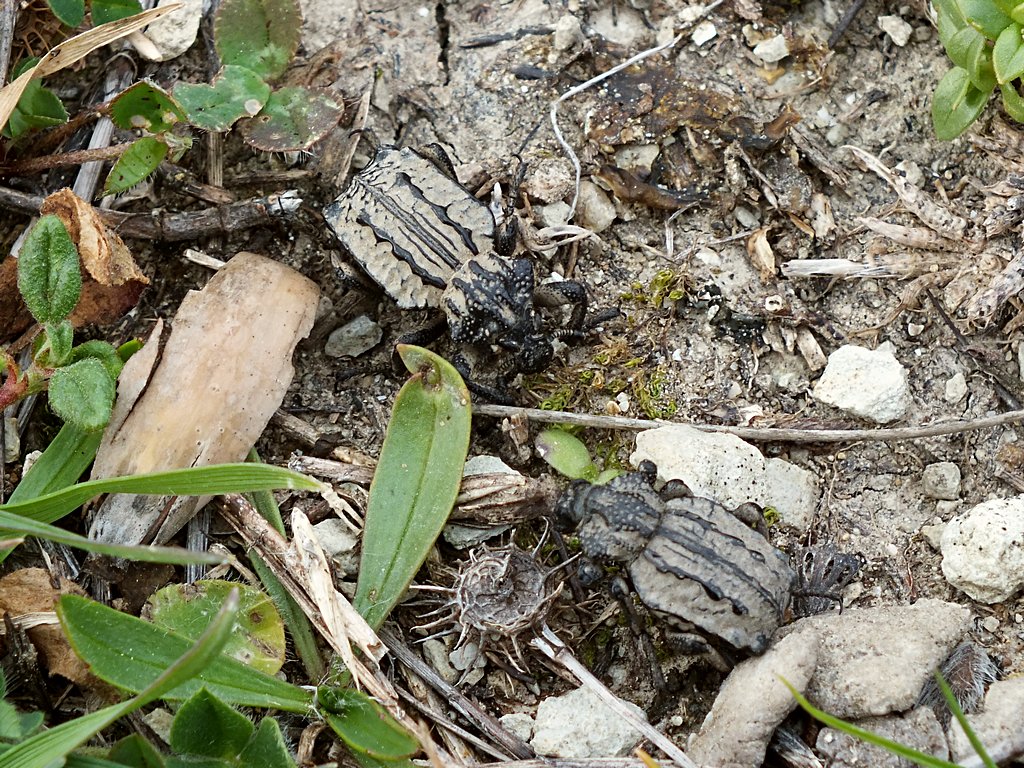 Finalmente si ricomincia a trovare qualcosa in attività, anche se niente di speciale, come questi Brachycerus che pascolavano tra l'erbetta. Lazio, Roma, San Vittorino, 250 m, 23.I.2012, M. Gigli legit