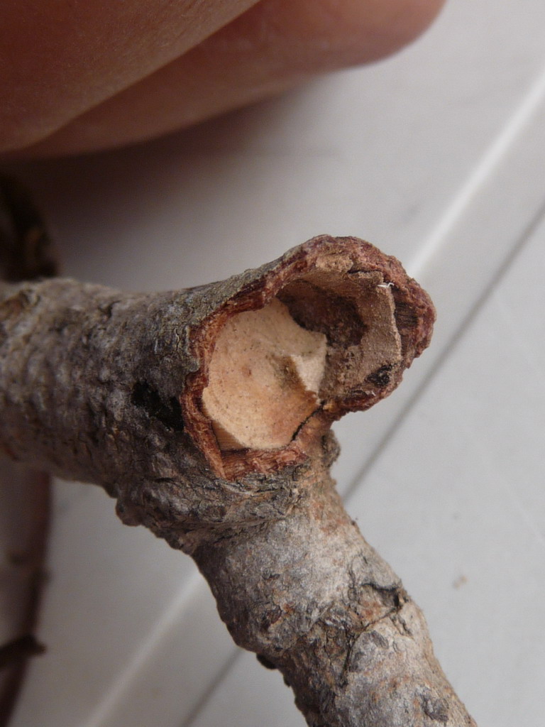 Poi, io ho asportato il rametto da dove incominciava a seccare (se non ancora dopo). Potrebbe essere un problema? Mi è venuto il dubbio che la larva inizi a mangiare da dove è stato deposto l'uovo, dirigendosi fino verso l'apice del rametto, per poi ripercorrere la galleria e continuare da dove aveva incominciato fin dove è sazia e dove si impupa. Potrebbe essere così? Se sì, è un bel problema, giusto?