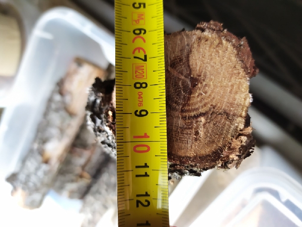 Ieri ho raccolto questi tronchetti di rovere (diametro 5-8 cm circa). Ci sono un paio di gallerie larvali a meno di un cm dalla corteccia, basse e abbastanza larghe come si può vedere dalle fotografie, che corrono parallelamente al tronco per almeno 15-20 cm. Ovviamente le sto conservando per vedere cosa uscirà a primavera, ma si riesce a fare qualche ipotesi di cosa potrà uscire? Non so nemmeno se siano di cerambicide o di buprestide a dire il vero. Fornisco una breve descrizione dell'ambiente: Trentino, quota 900 m circa, versante sud della montagna, abbastanza ripido, molto assolato e caldo in estate. Vegetazione arborea principale nella zona: Pino nero in abbondanza, faggio, per l'appunto qualche rovere, carpino, orniello. È una zona in cui ho già raccolto, ma perlopiù specie trovate sulle cataste di Pino nero.