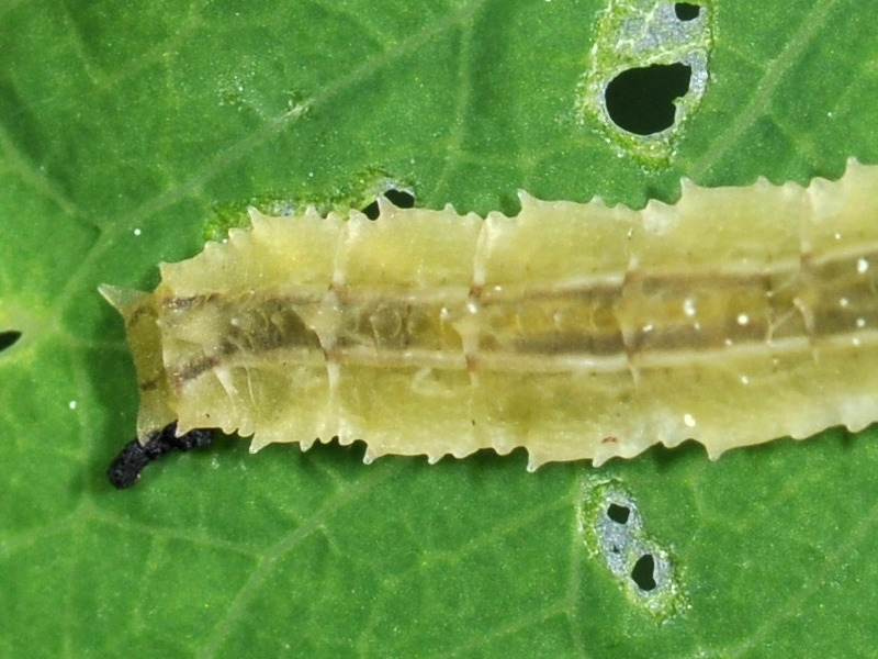 Il modo di mangiare la foglia mi ricorda le larve di Tenthredinidae.