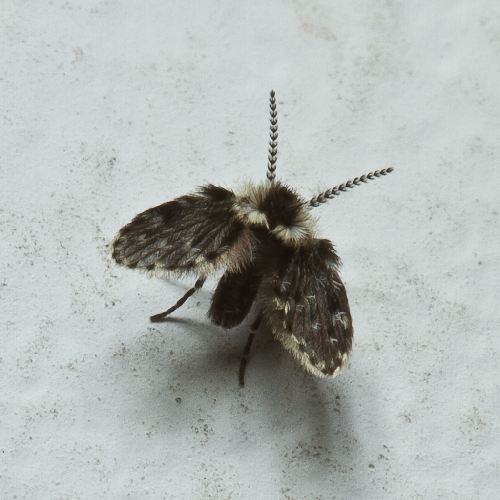 Io lo taxerei come Psychodidae, Psychodinae, Telmatoscopini. Questa tribù comprende molti generi, accomunati dall'avere i segmenti antennali nodiformi, forse neppure distinguibili (ad oggi) se non si osserva l'armatura genitale, la forma degli ascoidi e una serie di altri innumerevoli caratteri esoscheletrici presenti sotto la fitta peluria.