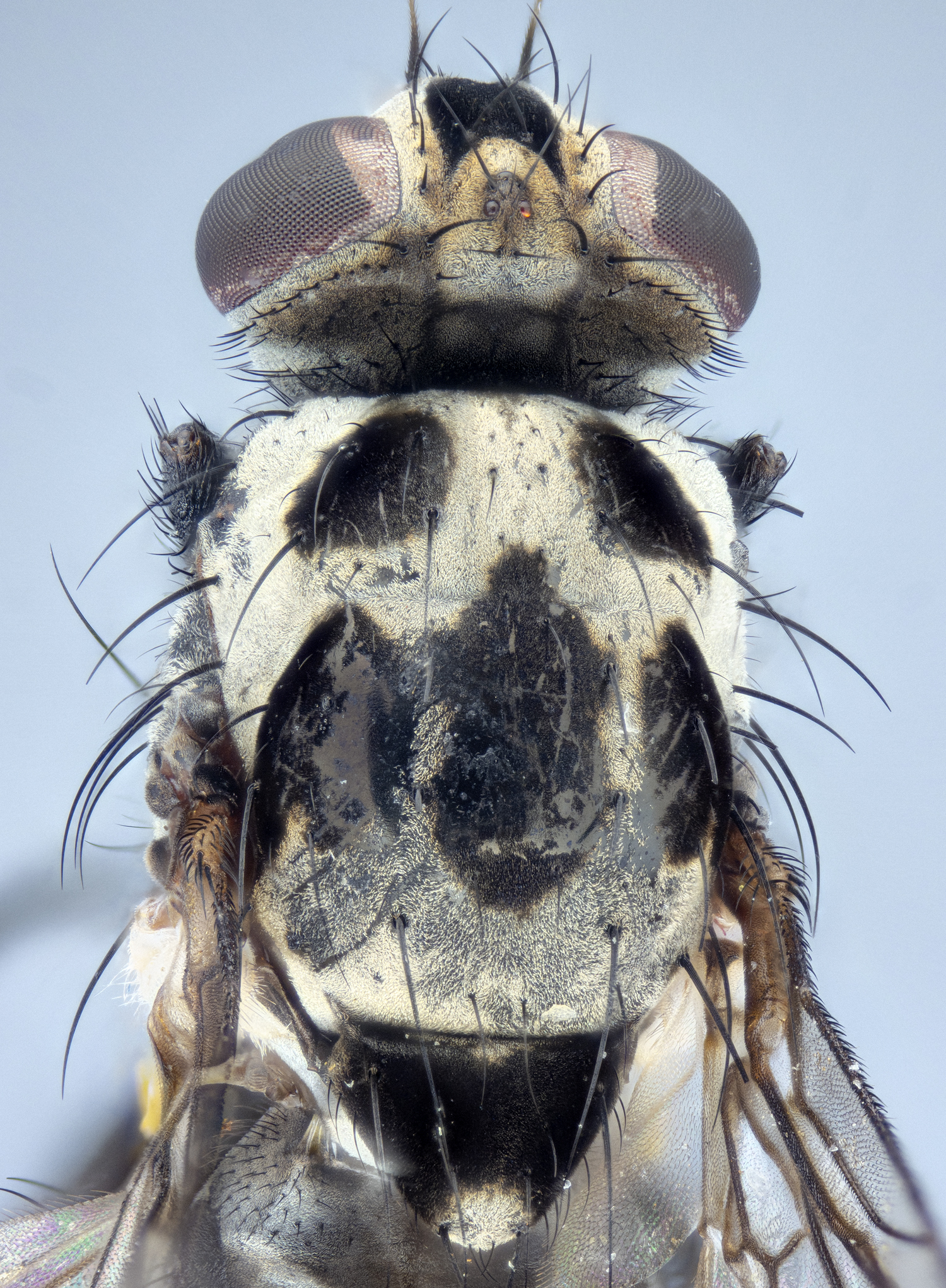Già che ci siamo, uno dei caratteri che consentono di separare gli Anthomyiidae dai Muscidae è la presenza o meno di peluria sotto lo scutello. Inutile dire che nelle foto di insetti vivi non sono mai riuscito a cogliere iil carattere. Qui si vede?