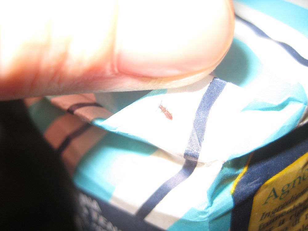 Considerando che gli stessi insetti li trovo in giro per casa, il fatto che il pacco aperto non fosse attaccato mi fa propendere per 2.