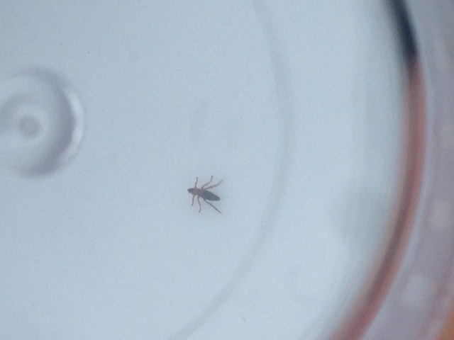 Ho fatto una ricerca minuziosa nel letto sia nostro che di mio figlio, che peraltro risiedono in due camere diverse, e anche sul divano del salotto. Non ho trovato alcun segno che mi faccia pensare a cimici dei letti, inoltre sia mia moglie che mio figlio dormono con il pigiama addosso e questo dovrebbe escluderle. Leggendo il vostro forum temo che il problema sia da ricercare nel sottotetto in legno dove risiedono entrambe le camere da letto. Non sono riuscito però a trovare alcun foro o residui di legno mangiato, ieri sera però ispezionando la coperta di lana ho trovato due diversi insetti all'interno, uno ancora vivo e l'altro secco. Quello vivo che in foto vedrete nero salta ma credo che non voli. Alla coldiretti questa mattina mi hanno detto che quello nero dal corpo sembrerebbe una pulce ma le zampe non sono caratteristiche di tale insetto. L'altro sembrerebbe un coleottero.