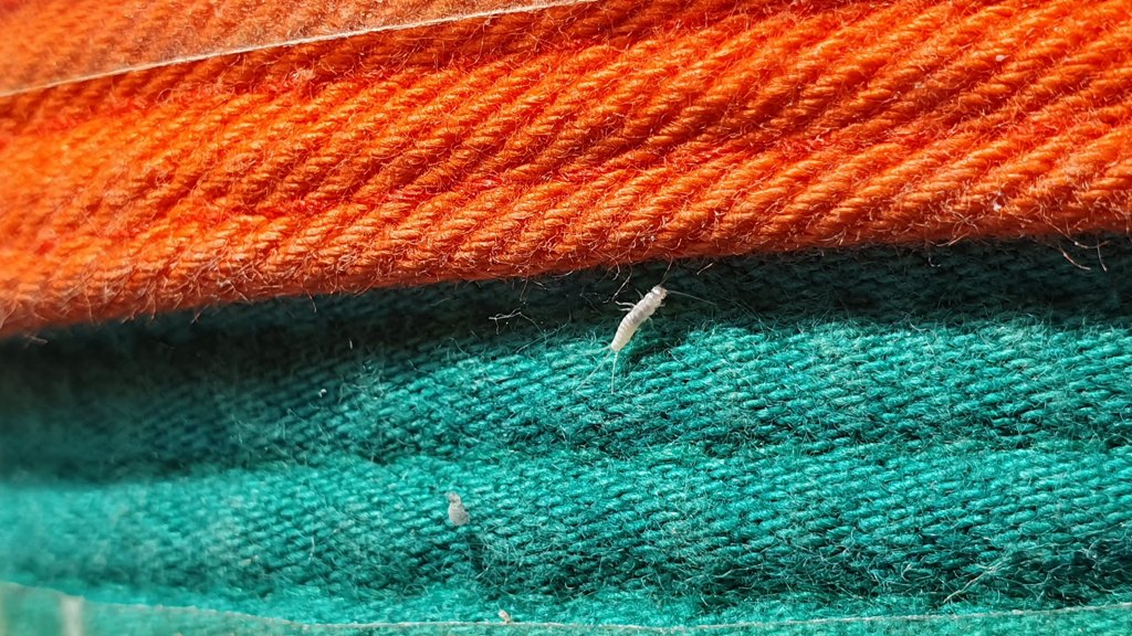 Sono larve di Dermestidi del genere Anthrenus. Comuni in molte case (la specie da noi più diffusa sembra A. verbasci), generalmente rifuggono la luce e, oltre che su quanto citato da Enrico, possono vivere e svilupparsi in modo frugale su derrate, su cuoio di scarpe accantonate e su modestissimi detriti organici spesso contenenti cheratina, presenti anche nella polvere di casa sui pavimenti, dietro ai battiscopa, sotto al mobilio ecc. (nostre desquamazioni cutanee, peli e capelli, fibre di lana da stracci; nonché frammenti di piccoli insetti morti e secchi, contenenti chitina e sclerotina; ecc.), compiendo generalmente una generazione all'anno. Se la presenza è abbondante si potrà cercare d'individuare come focolaio d'infestazione un preciso substrato infestato, da eliminare.