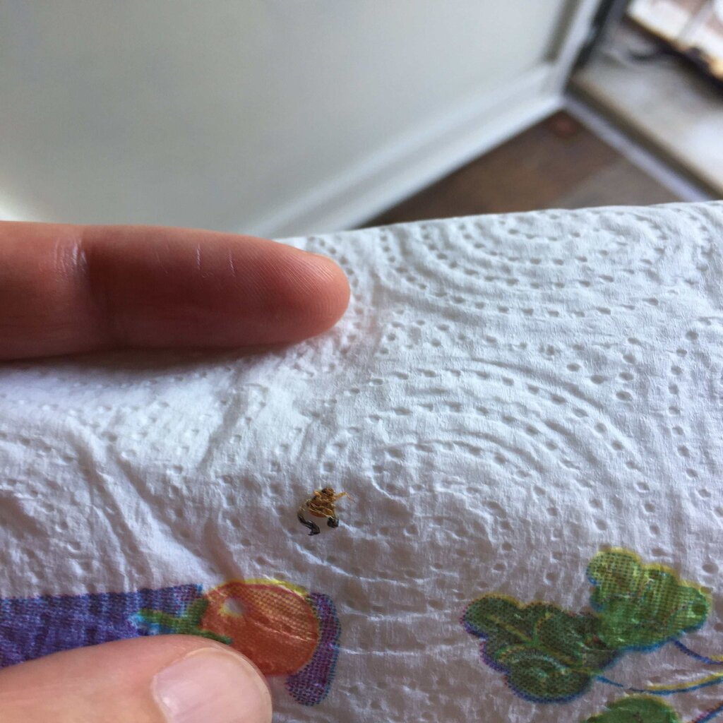 P.S. sulla testa ha dei puntini neri (due credo siano gli occhi). Poi aveva una sorta di guscio/bozzolo giallognolo della consistenza friabile, tipo quella cosa che rimane sul chicco di mais quando fate i pop corn (si, è oscena la descrizione).