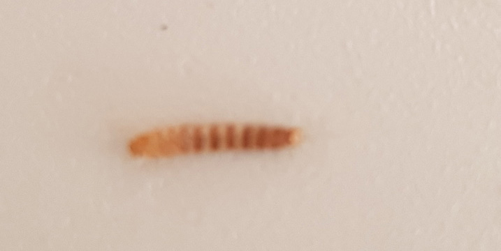 Ho trovato sotto il letto di casa mia questo "vermetto" della lunghezza di circa 1 cm.. o poco meno.. e anche questo che mi sembra essere un uovo..