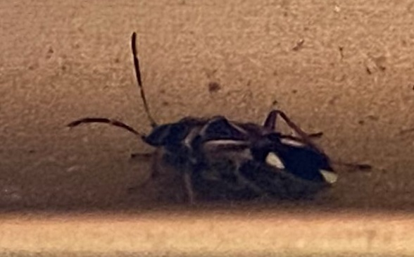 Li ho trovati così, morti, vicino al bagno posto al piano superiore di una casa in campagna. Cosa potrebbero essere? Avevo pensato a dei coleotteri, ma non ne sono certa, poi ne ho visti altri vivi vicini a una zanzariera e da una ricerca per immagini mi sembra possa essere un Rhyparochromus vulgaris. E' possibile?