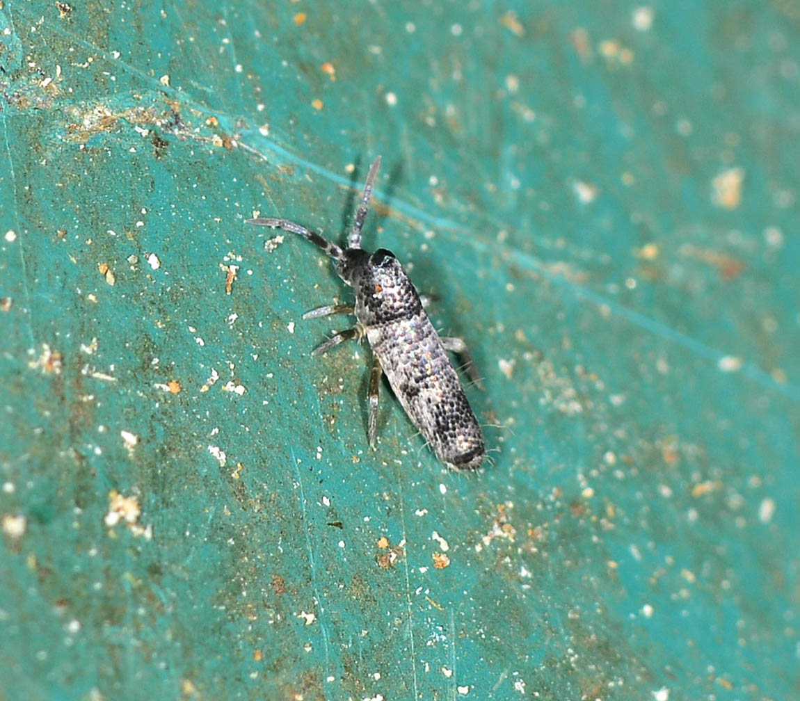 Chiedo la cortesia di poter avere conferma si tratti o meno di Collemboli. Ho purtroppo dovuto ridurre la qualità della foto di 1/20 per poterla pubblicare, tra l'altro non è stato facile fotografarlo, l'esemplare in foto era circa mezzo millimetro. No non è un errore, era proprio minuscolo ma ne ho trovati anche di più piccoli... gli esemplari più grandi, i "giganti tra i giganti", col quale ho a che fare nell' "infestazione" di casa... arrivano massimo a 1mm e mezzo comprese le antenne.