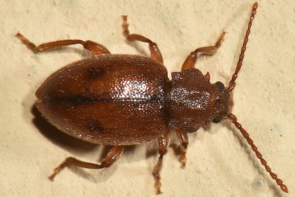 Ecco! dovevo immaginarlo che poteva servire un po di soggetti! Il guaio è che pensavo fosse un Chrysomelidae,e mi sembra di aver preso solo una bestiola, che quindi non è detto che sia maschio. Li ho fotografati in diciotto occasioni diverse, e comunque mi sembra che ci sia molta variabilità. come questo per esempio. L'ho trovato il 15 Agosto, a circa 20 metri da dove ho trovato gli altri. Le foto non sono il massimo,  ma io faccio quel che posso con il 105. Le macchie scure sulle elitre sono quasi impercettibili e gli angoli del pronoto sono completamente diversi, ....sembra proprio un'altra specie! A fine Marzo dovrei Tornarci, e se ne trovo, non li lascio li.  Vincenzo