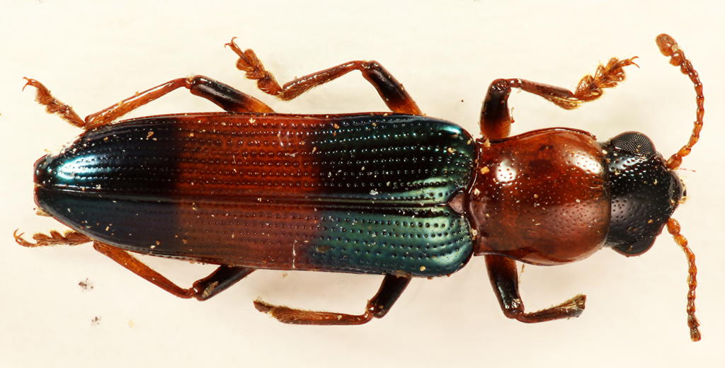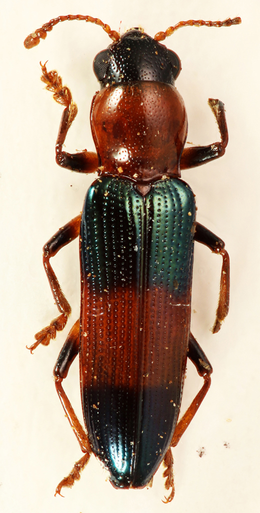 Bel lavoro Daniele! Mi pare che l'ipotesi tricolor sia convincente. In effetti i colori della foto traggono un po' in inganno: la zona della base elitrale è di colore nettamente diverso da quella apicale; quest'ultima è quasi nera, con lievissimi riflessi violacei.