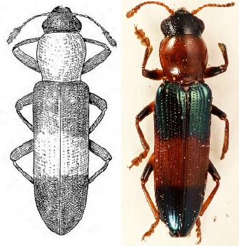 (la forma delle elitre non combacia benissimo, e l'ombreggiatura delle zampe non dà l'idea di un inscurimento all'apice dei femori; ma non so quanto peso dare a questi dettagli, sembra un disegno piuttosto approssimativo... un margine di dubbio è comunque d'obbligo)