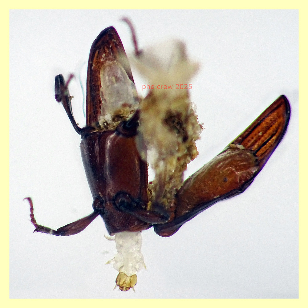 Solo ora leggo il tuo post, dopo che ti ho scritto un mp. Sulla specie occorre vedere il materiale al binoculare, se sono comuni tienimene un po' da parte, se puoi anche qualcuno vivo. Tieni anche i vari pezzi rotti degli Ogmoderes e la larva. Le femmine non sono partenogenetiche (o almeno non sembrano esserlo), ad ogni modo i Cryptolestes (e Leptophloeus) sono predatori e micofagi, ma non escludo, come sembra, anche saprofagi. Non si sa moltissimo sulla biologia, quindi le tue osservazione sono interessanti. Alcune specie, anche autoctone, attaccano le derrate, ma si trovano anche in natura.