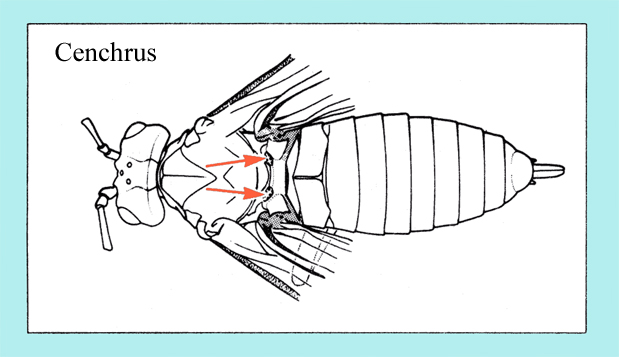 "Gli Argidae si riconoscono per i cencri molto grandi" "I Cephidae si riconoscono per l'assenza di cencri".