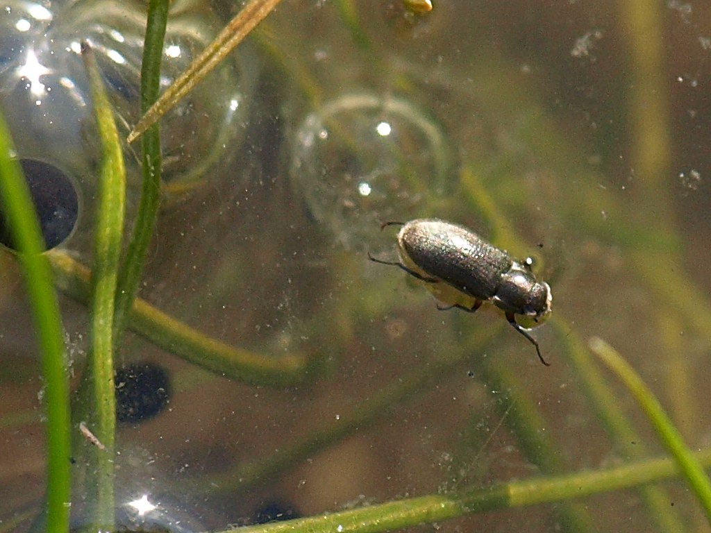 La cosa strana di questi insetti è che tendevano a concentrarsi sopra le masse gelatinose di uova di anfibio. Ed in loro compagnia c'erano pure dei piccoli Idrofilidi.
