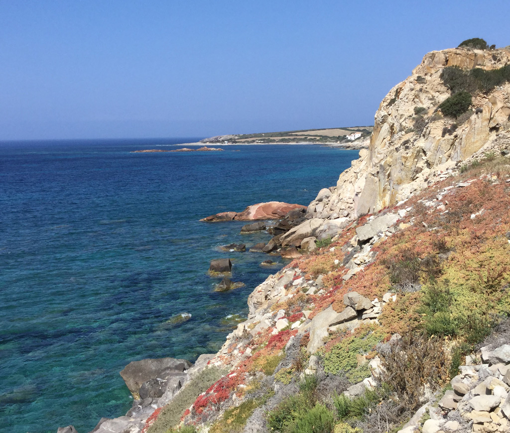 Ho cercato tra le mie foto delle vacanze, ma non ho pensato di fotografare Genià. Ecco comunque un'immagine della costa di San Pietro