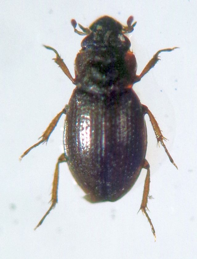 Alla luce UV. mm 1,4. Metasterno tutto pubescente, epipleure he non arrivano all'apice, torace con breve debole solco trasverso anteriore e debole depressione a larga V sul disco. Grazie per ogni parere.