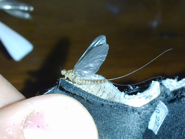 Si, essendo un pescatore a mosca effimere ed altri insetti che si sviluppano come ninfe e poi schiudono li conosco bene. Ma io vorrei invece sapere qualcosa di più in merito a questa effimera. Noi la classifichiamo sommariamente BWO (Blue Winged Olive), una definizione che comprende varie forme (si dice così?) di serratelle dai colori più disparati, dal giallo al rosso passando appunto per il colore olive. Questa è un po' la base delle nostre costruzioni e forse sarebbe meglio se non mi fosse venuta la voglia di saperne di più, avrei continuato a pescare tranquillo senza questi patemi d'animo, ma sono un capoccione curioso e non mi accontento, cerco sempre di saperne di più. So bene che le foto non sono macro e non mostrano tutti gli elementi per determinarla con certezza, mi basta qualche notizia un po' più approfondita.