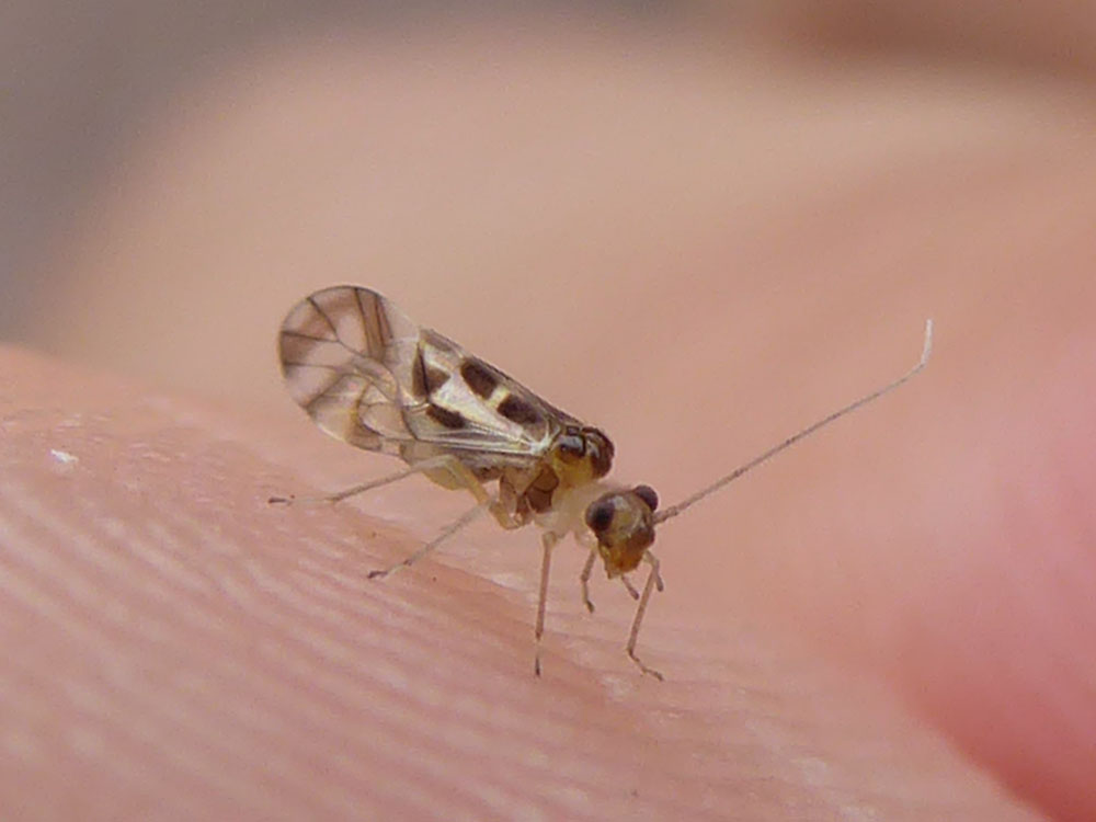 Psocottero Stenopsocide, dovrebbe trattarsi di Graphopsocus cruciatus (Linnaeus, 1768). Comune specie paleartica, secondariamente olartica.