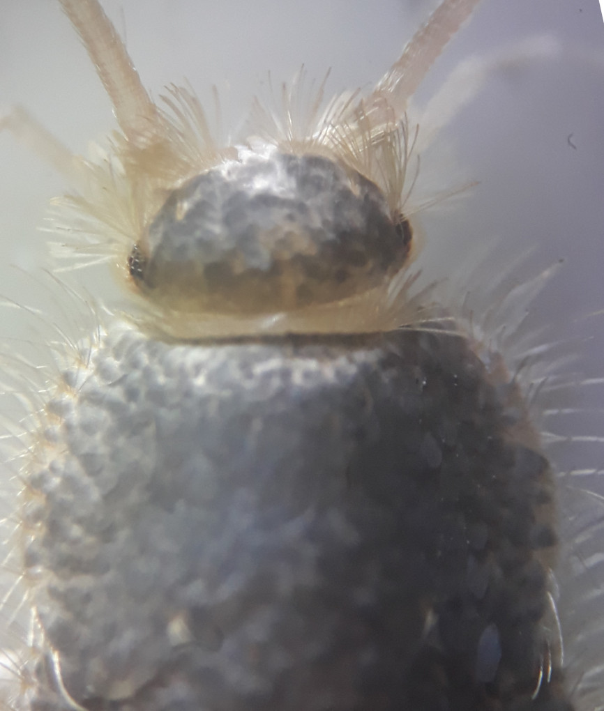 Si tratta di Ctenolepisma longicaudata Escherich, 1905, un classico coinquilino delle nostre case. Una specie simile, e anche molto più nota, Lepisma saccharina (Linnaeus, 1758), differisce soprattutto per la fronte priva di lunghe setole e per i cerci decisamente più corti. |