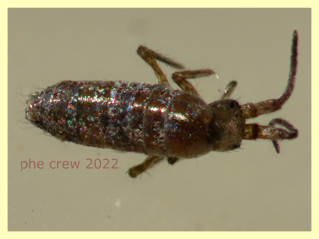 ...con le chiavi (se non ho errato) di Collembola.org arrivo per questo individuo di 2 mm. escluse le antenne alla famiglia Tomoceridae, poi per la scarsa risoluzione mi son fermato, ma sembra però che il mucro presenta solo un dente al centro...boh...