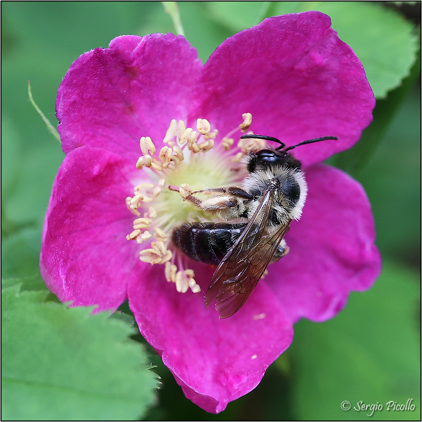 Questo imenottero trovato su Rosa pendulina sul Monte Ragola a circa 1500 m ha continuato ha girare a lungo in mezzo agli stami senza volare via: era letteralmente sotto l'effetto di una "frenesia impollinatrice". :lol1: Ha una bella chioma di peli biancastri e nessuna striatura nell'addome. Spero che le foto documentino sufficientemente le caratteristiche per identificarlo. Grazie.