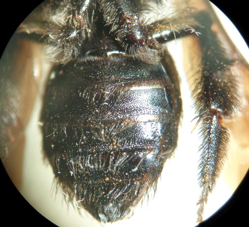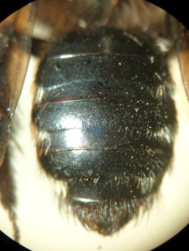 Specie già presente nel forum, la documento in dettaglio. mm 15. det. M. Quaranta. Triangolo propodeale microreticolato, alla base appena corrugato. Ai lati di esso il propodeo è microreticolato con grossi ma superficiali punti.