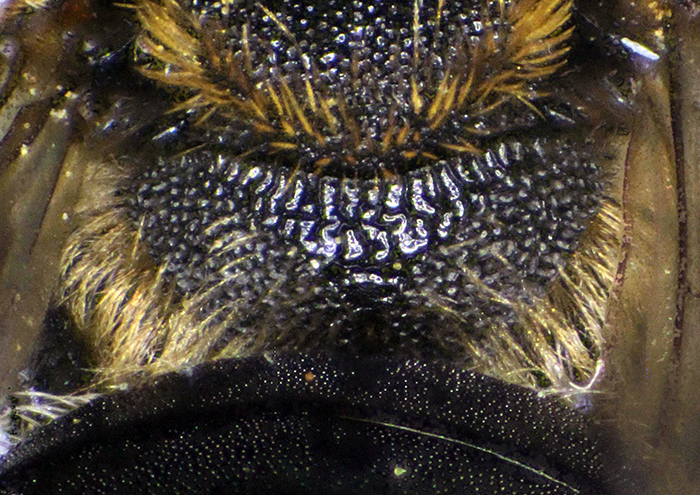 Una delle Andrena più piccole che conosca, caratterizzata dall'aspetto molto compatto, la scultura di mesopleura e propodeo molto marcata e l'area basale del labbro incisa all'apice.