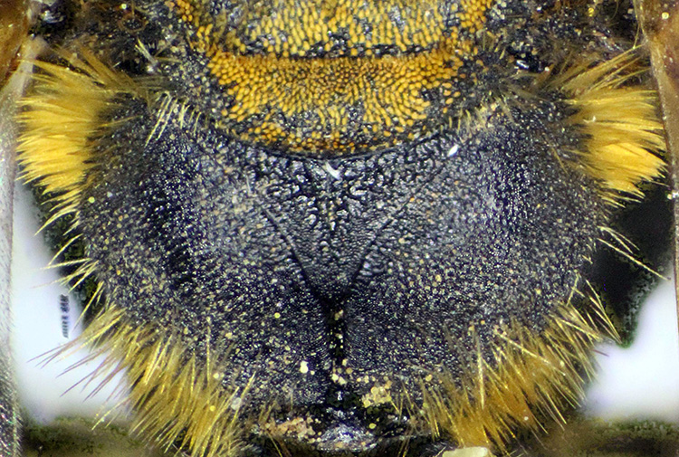 Una delle Andrena più belle che conosca, apparentemente simile ad alcune A. (Lepidandrena) per via della particolare peluria corta e spessa del torace, ma ben distinta per altri caratteri e soprattutto per le dimensioni quasi doppie.