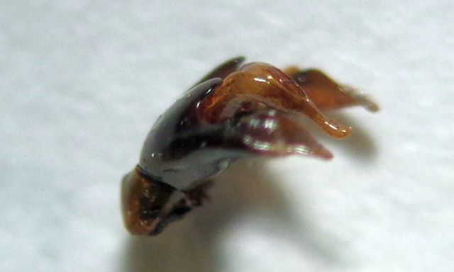 - mandibole con un dente preapicale, arrotondato; labbro superiore trasverso, lucidissimo;