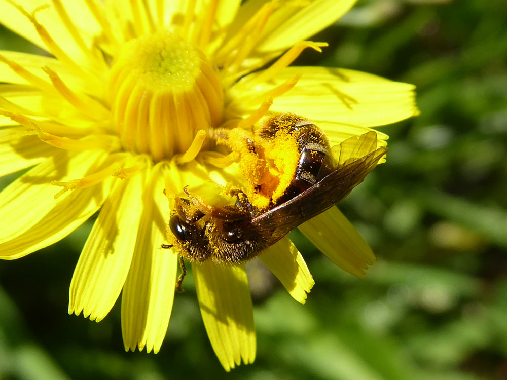 Buongiorno! Qualcuno sa cos'è questa piccola apina che ho fotografato mentre sguazzava nel polline?