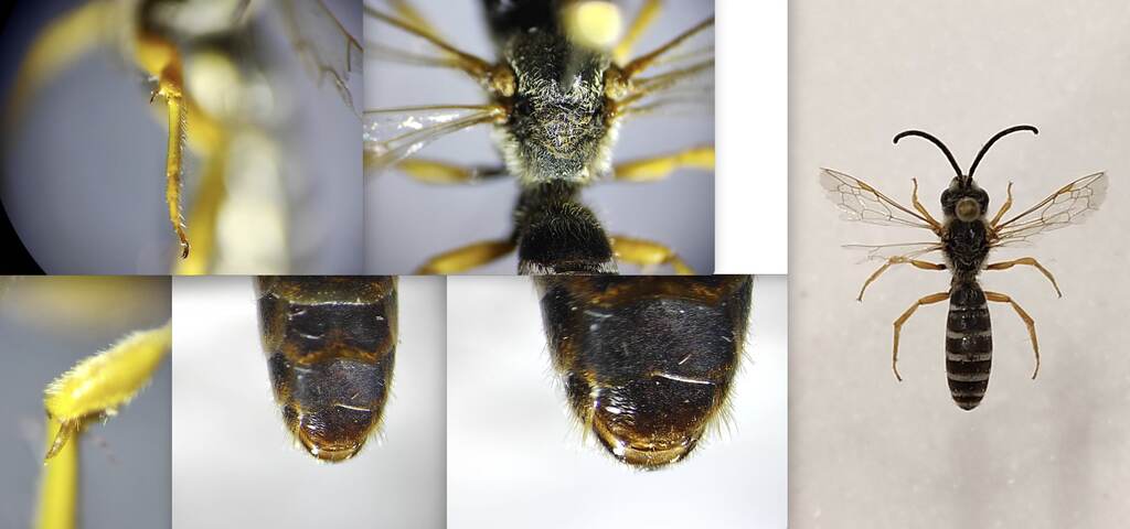 Se non ho studiato male, le uniche altre due specie con ultimo antennomero ricurvo sono H.scabiosae, dove però le antenne sono nere dorsalmente e brune ventralmente, e H.sexcinctus dove le antenne sono arancioni anche dorsalmente.