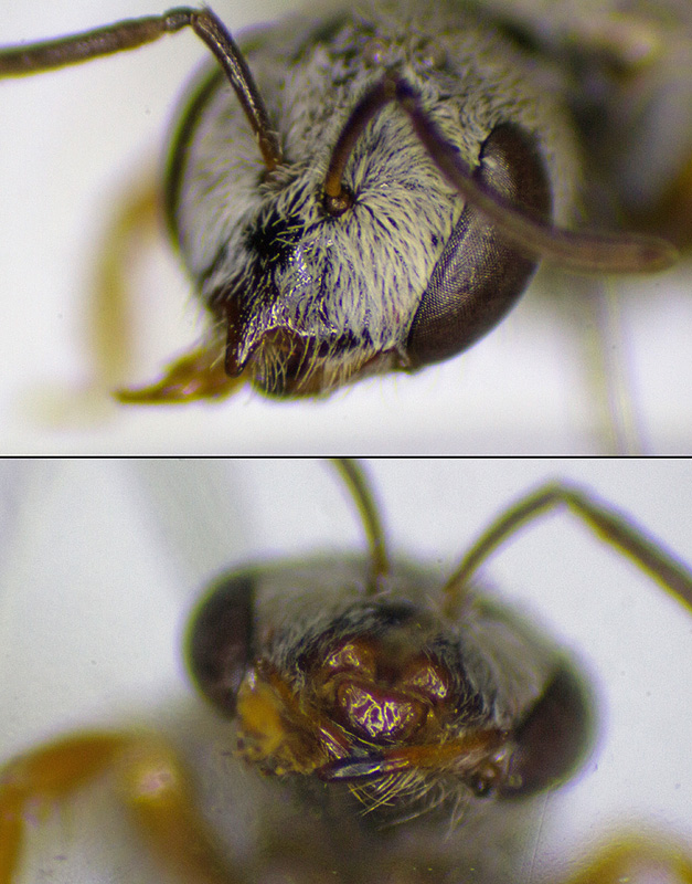 Grazie Pietro. Mi sembra che il labrum non sia bifido, ma faccio fatica a individuarlo, sembra incassato sotto quel clipeo così particolare... Allego foto, non so se aiuta (la seconda è fatta attraverso l'acetato).