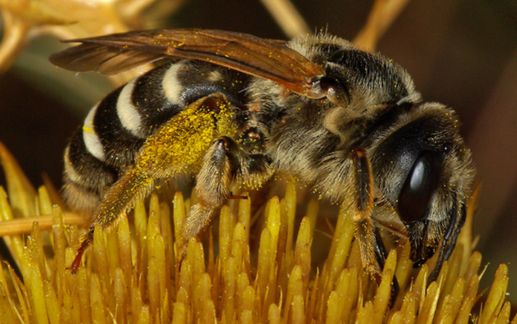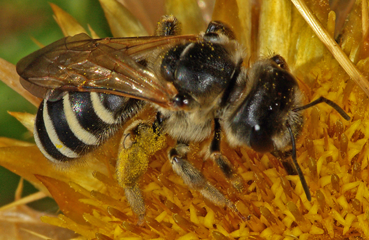 A me sembra anche questo un Halictus (la nervatura basale delle ali arcuata dovrebbe escludere la sottofamiglia Andreninae). A parte i maschi di Halictus quadricinctus per il resto del genere non distinguo nessuna specie. Almeno il genere è giusto?