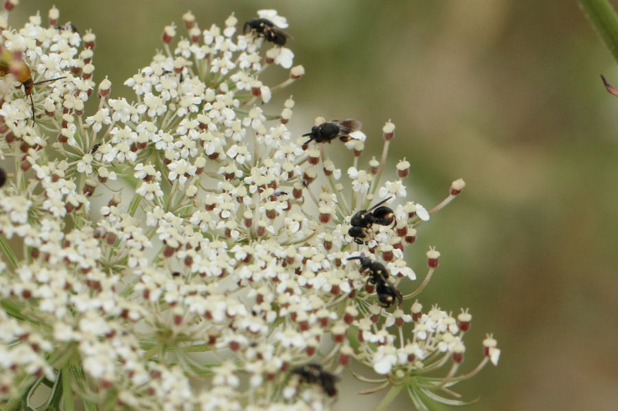 Ho notato tutto un gruppo di questi piccoli Chalcididae sopra le infiorescenze di un'ombrellifera. Sono abbastanza sicura del genere - chi sa se si riesce ad arrivare oltre (malgrado la scarsa qualità delle foto) :oops: